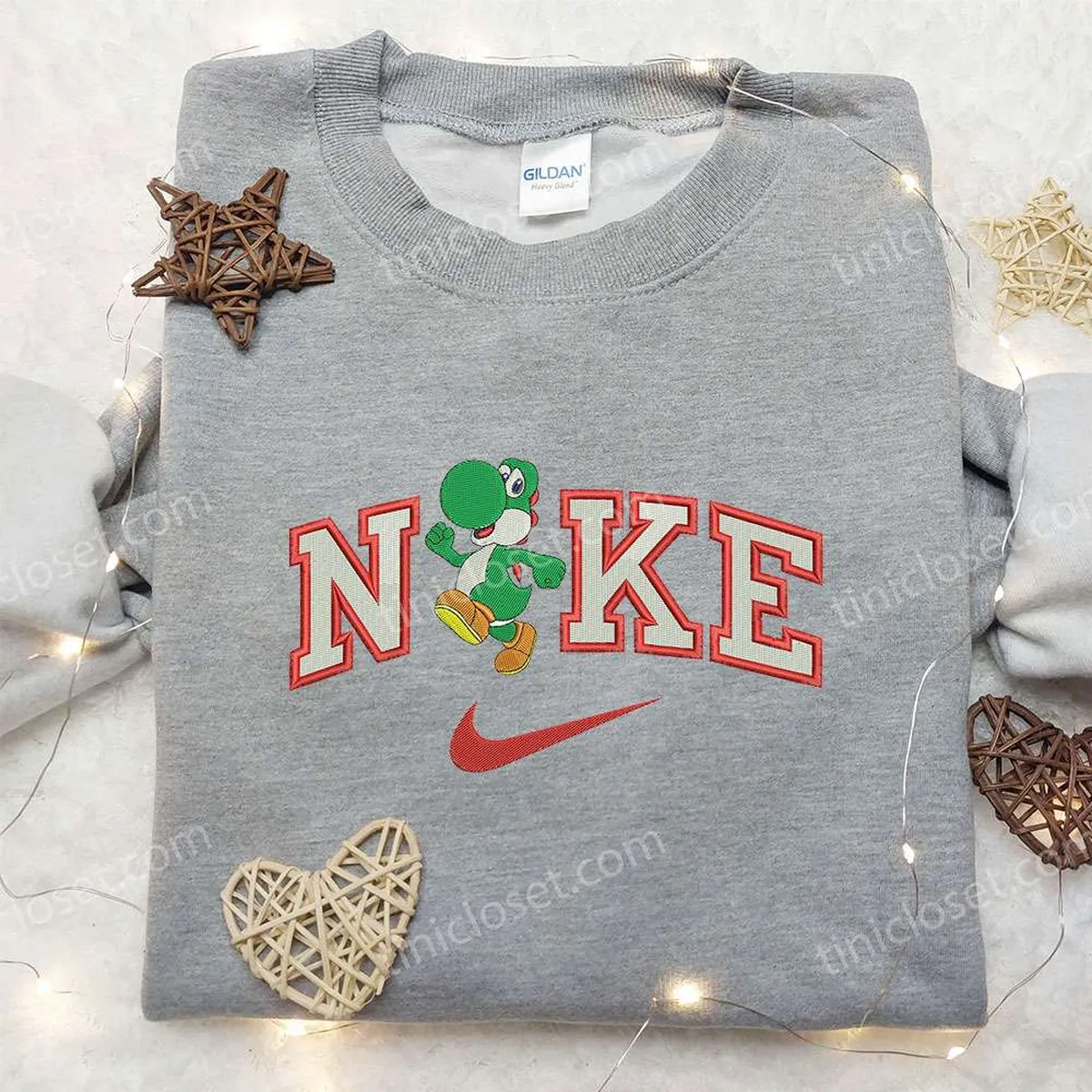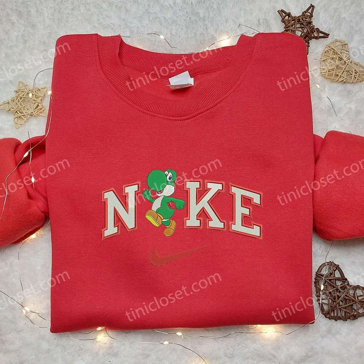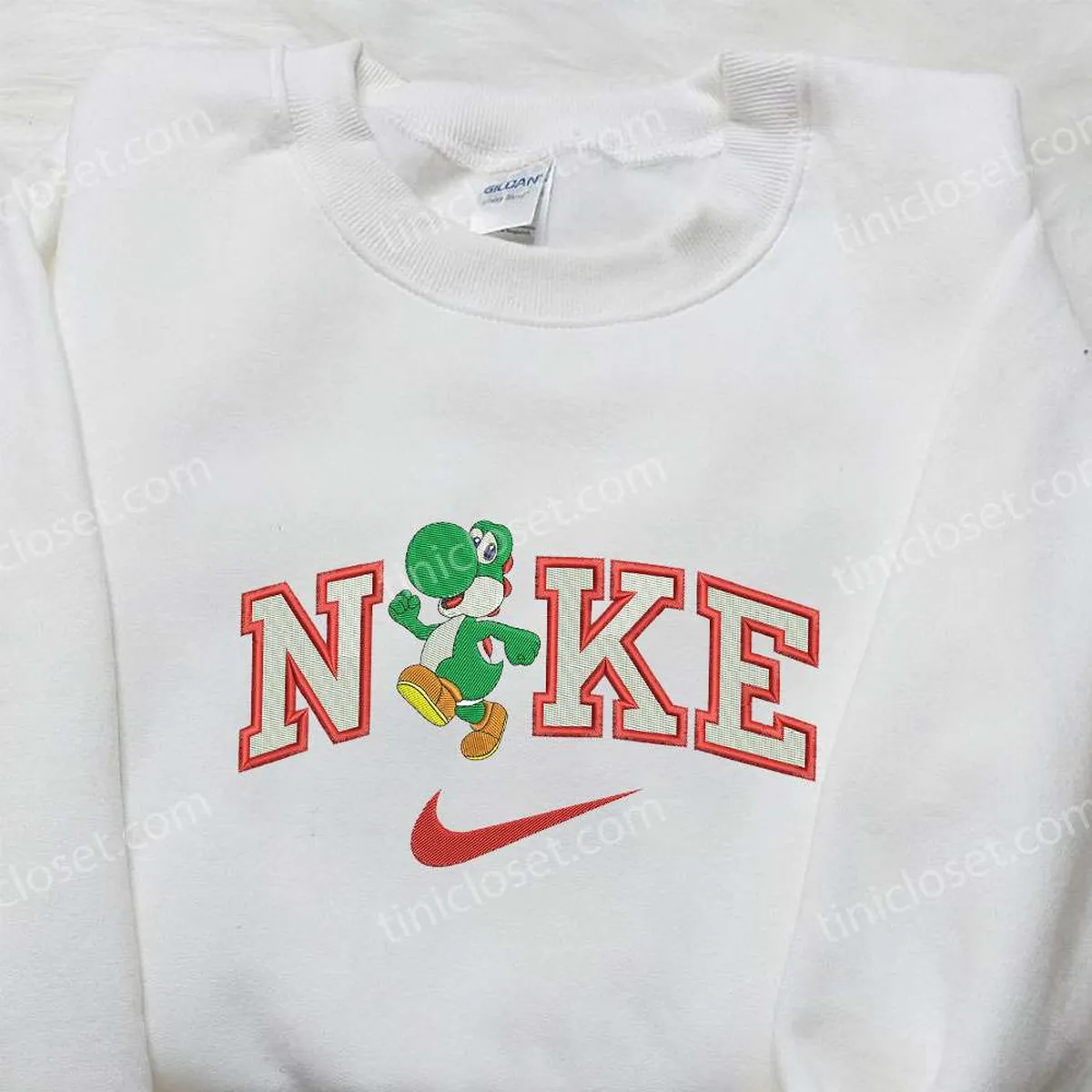 Yoshi x Nike Embroidered Shirt, Mario Embroidered Shirt, Custom Nike Embroidered Shirt