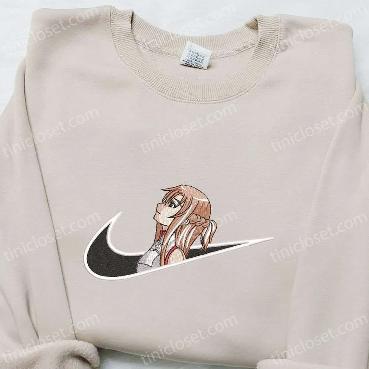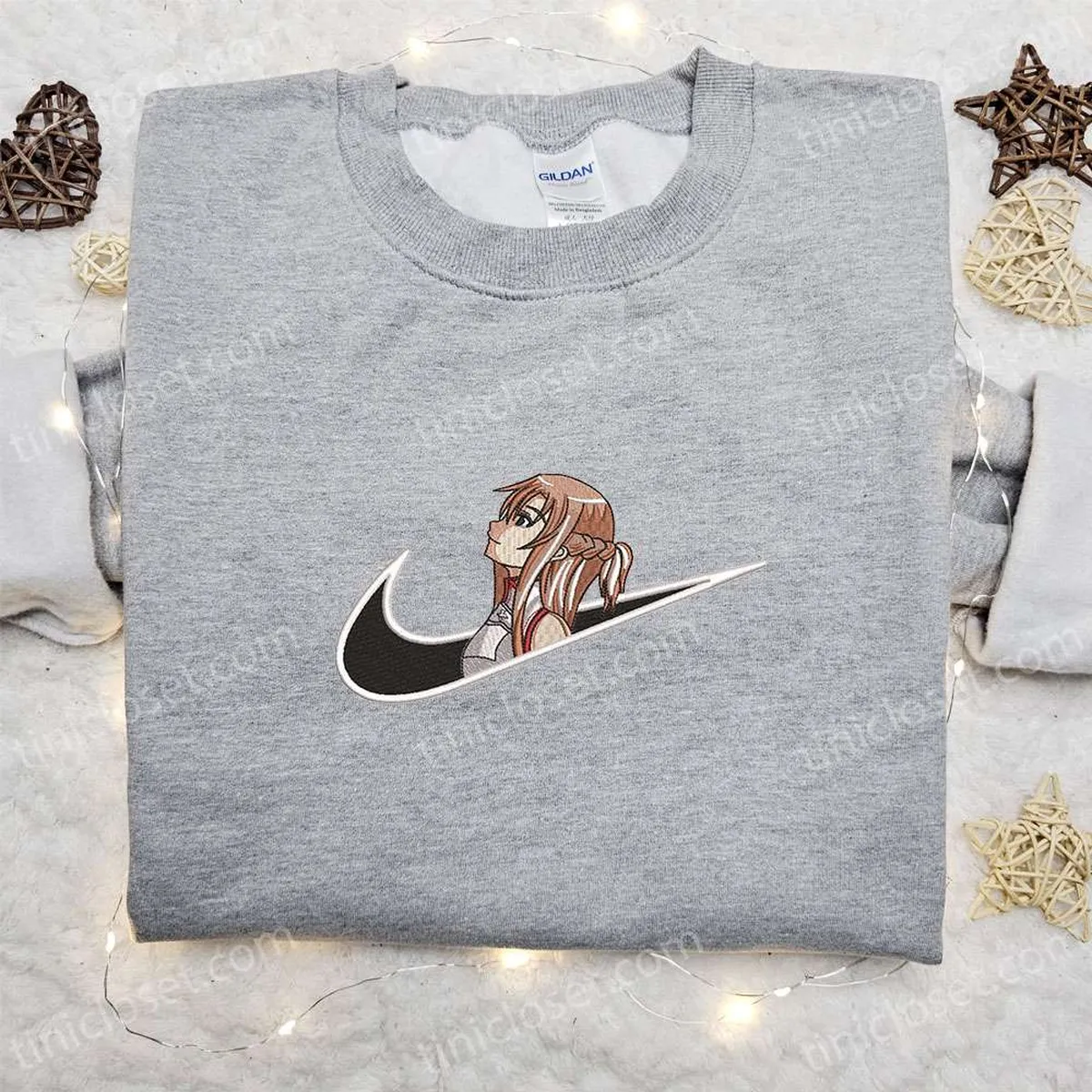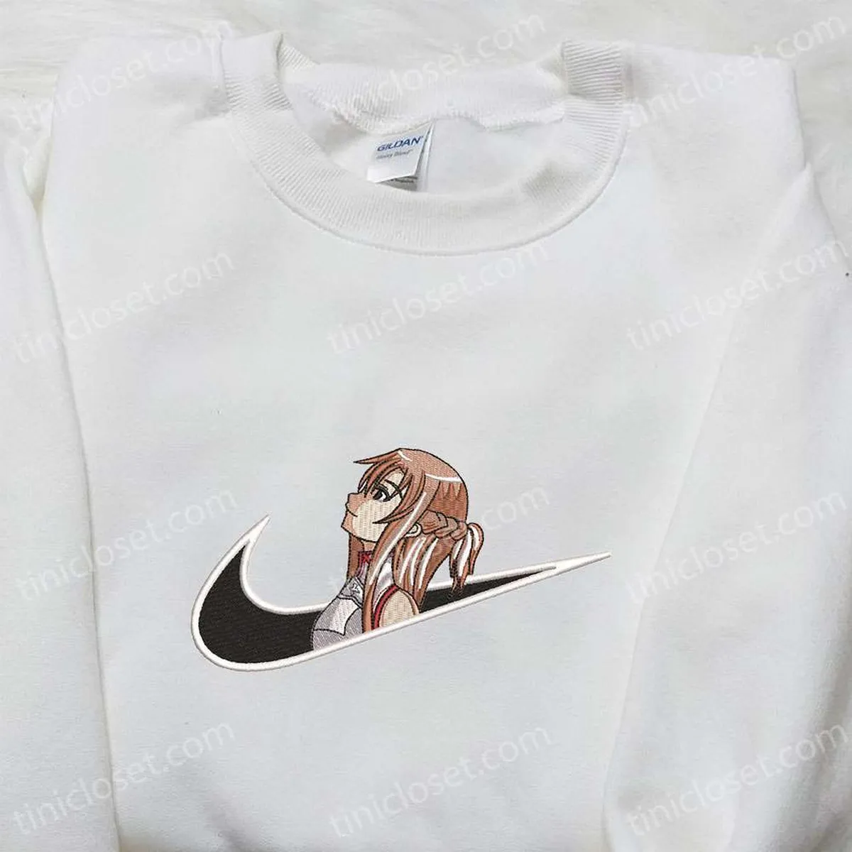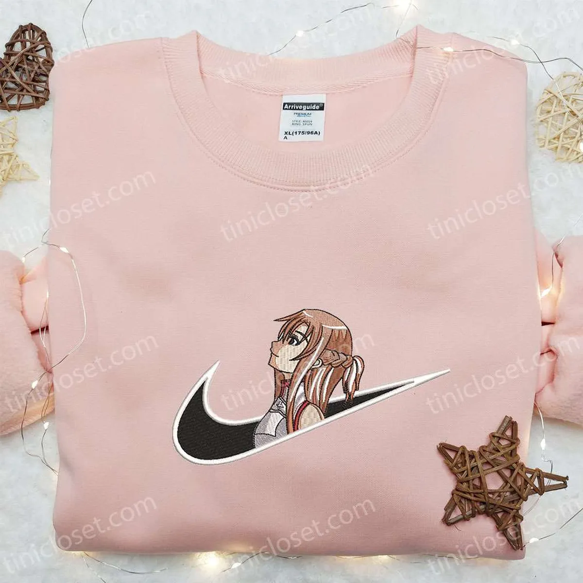 Yuuki Asuna x Swoosh Anime Embroidered Sweatshirt, Sword Art Online Embroidered Shirt, Custom Embroidered T-shirt