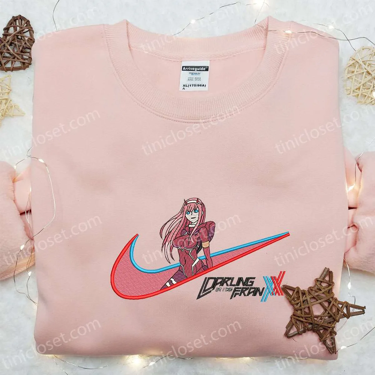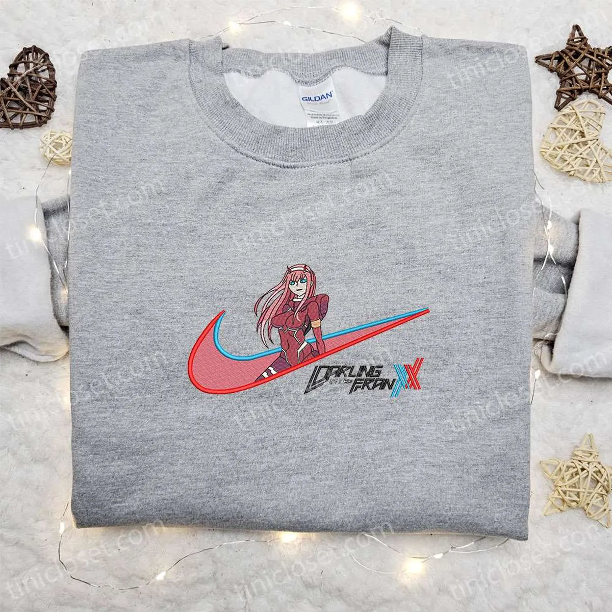 Zero Two x Swoosh Anime Embroidered Sweatshirt, Nike Inspired Embroidered Shirt, Custom Embroidered T-shirt