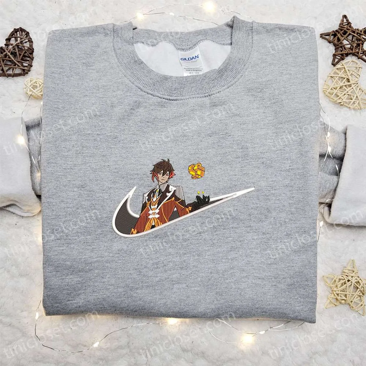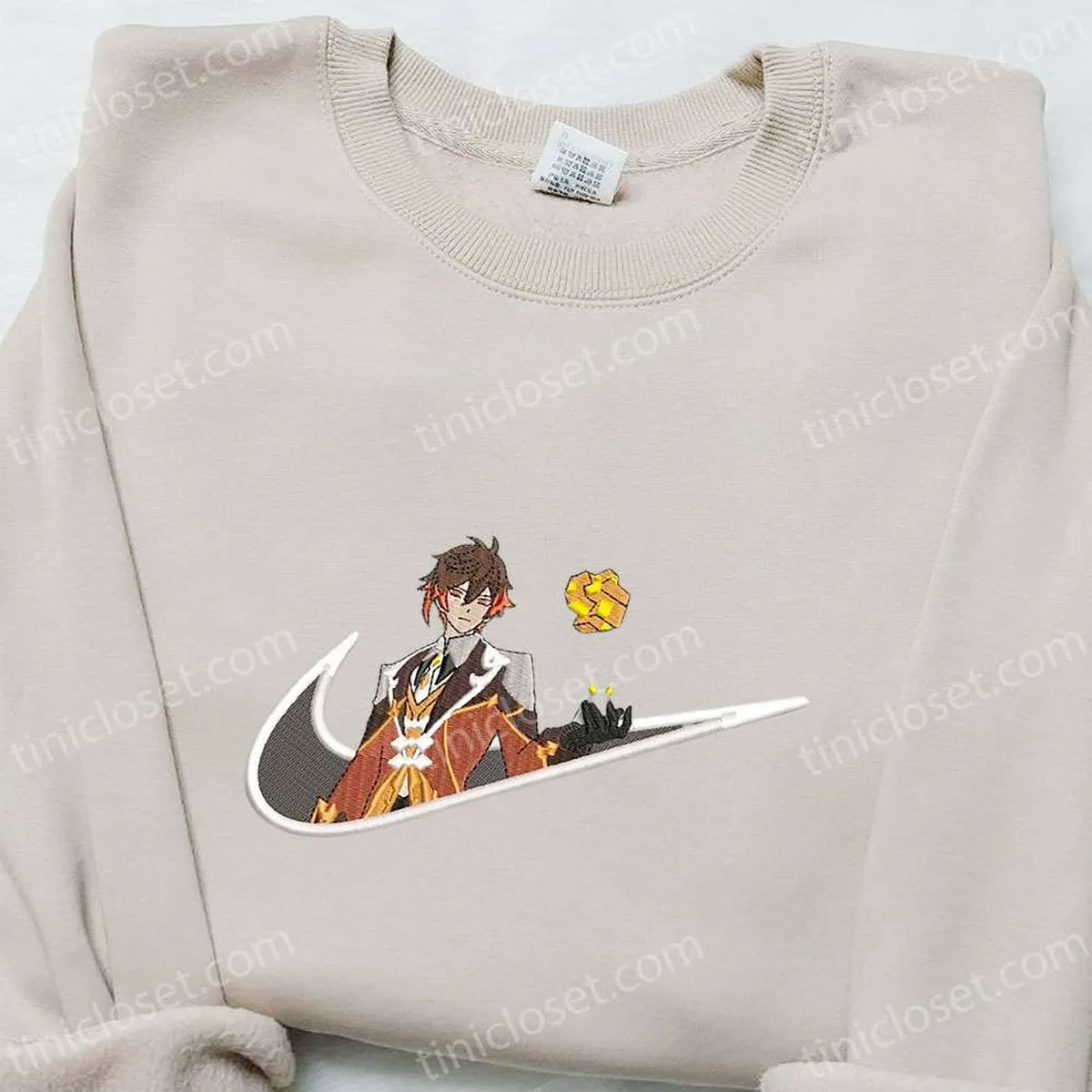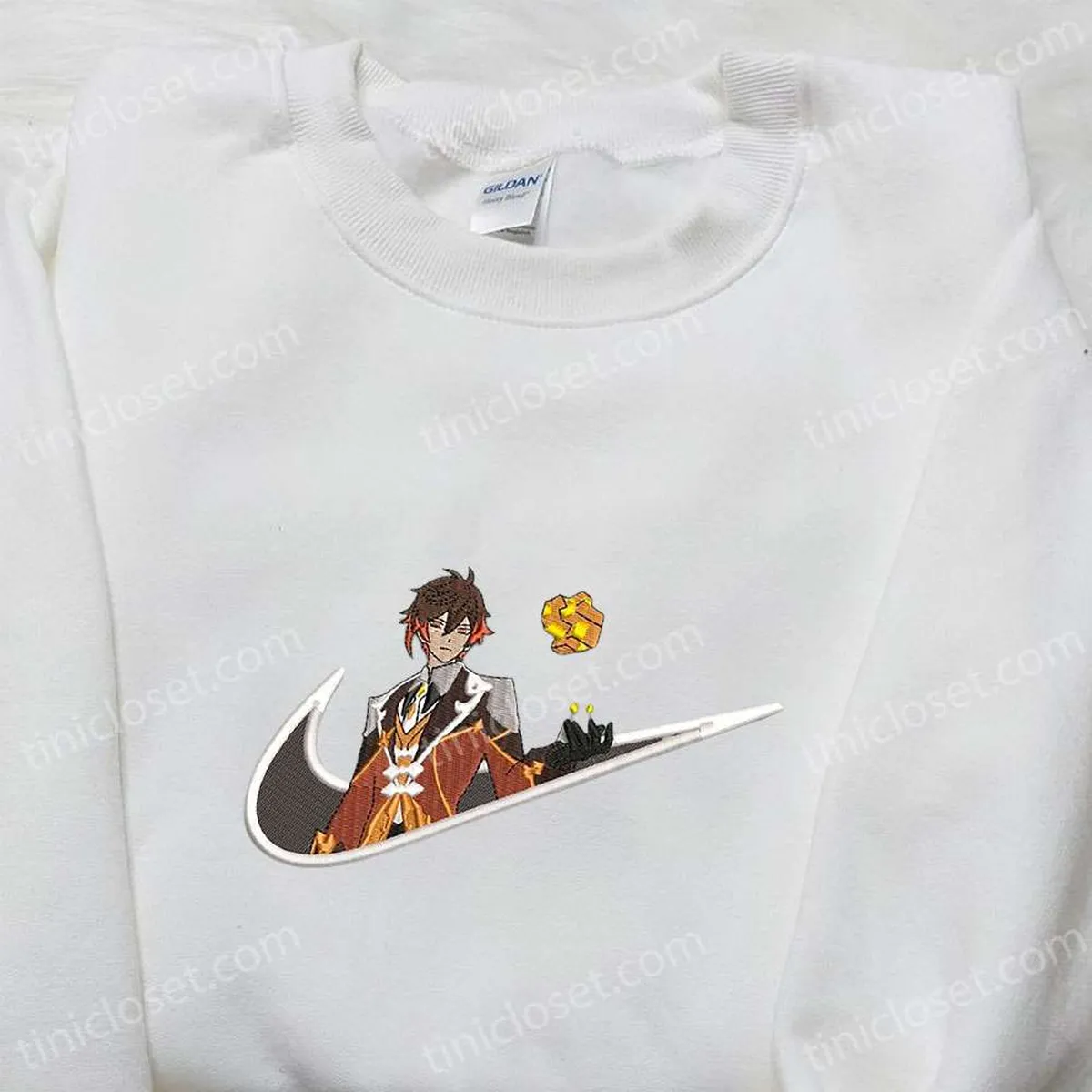 Zhongli Genshin Impact x Swoosh Embroidered Hoodie, Cool Anime Clothing, Best Gift Ideas for Family