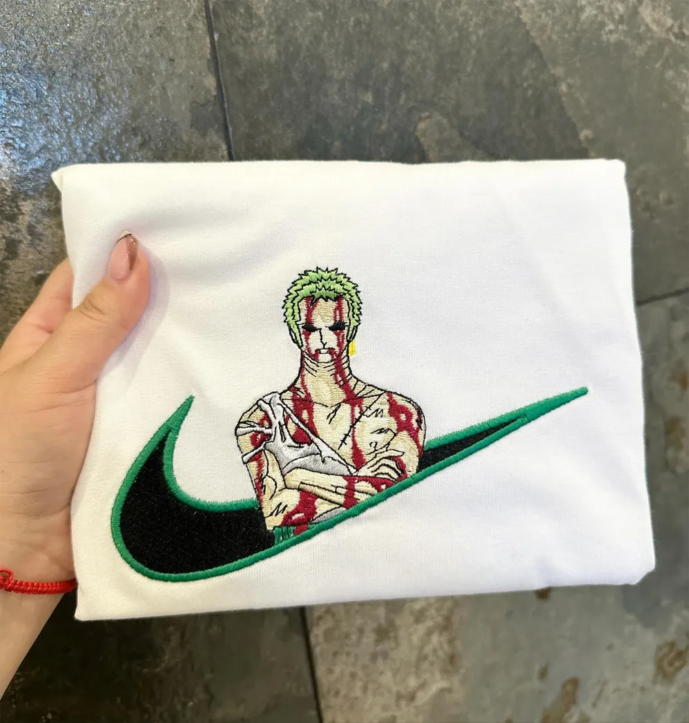 Zoro One Piece Anime x Nike Embroidered Sweatshirt Fashion Style For Couples, Valentines Gift For Him/Her